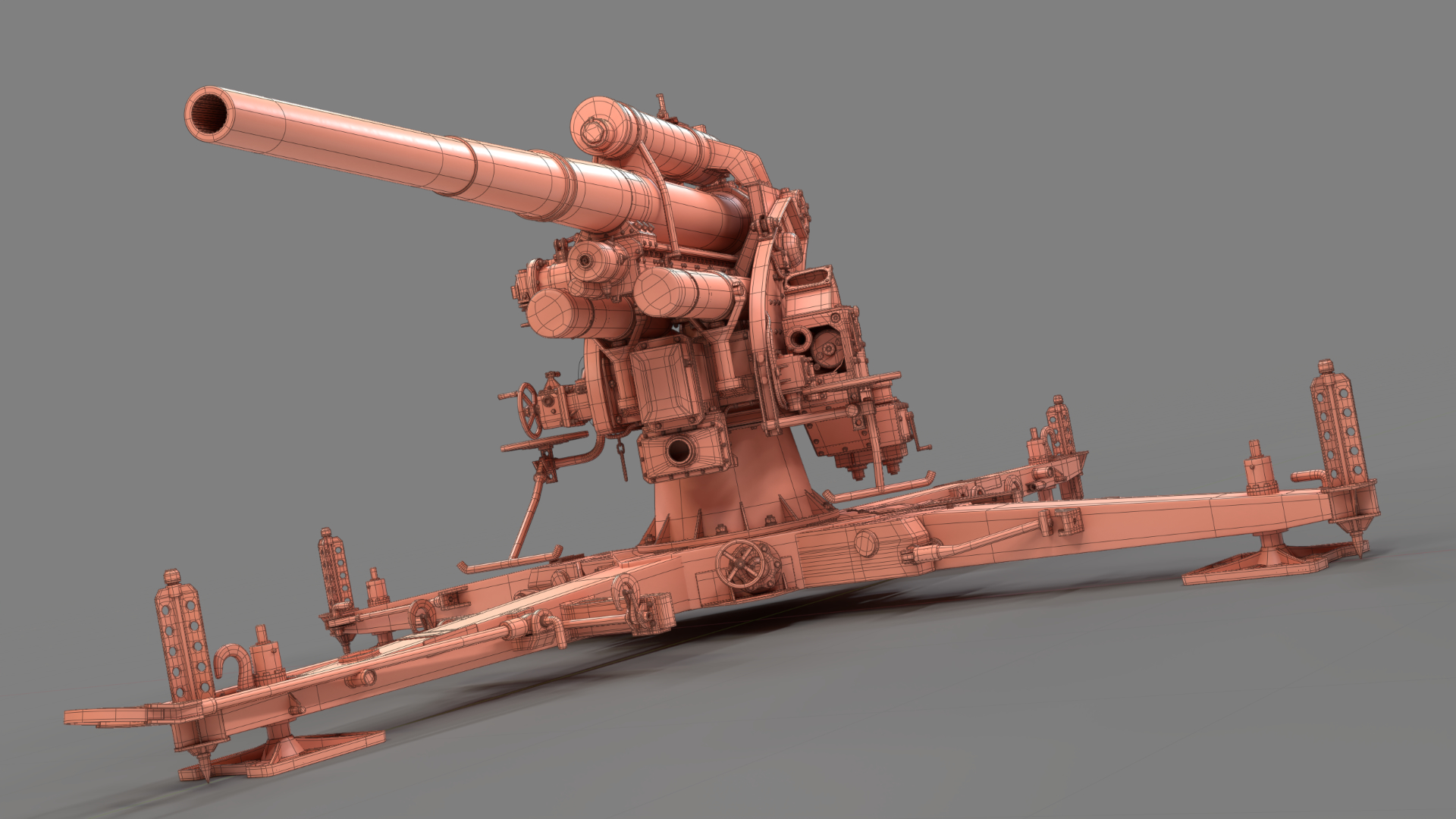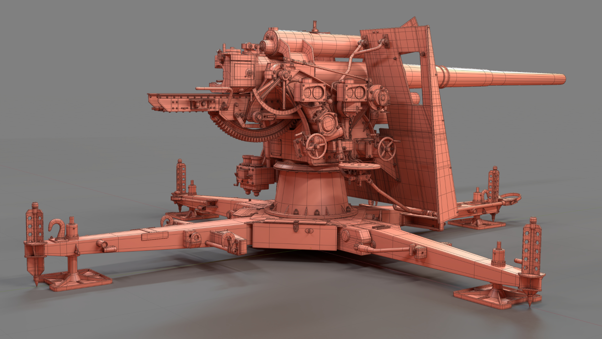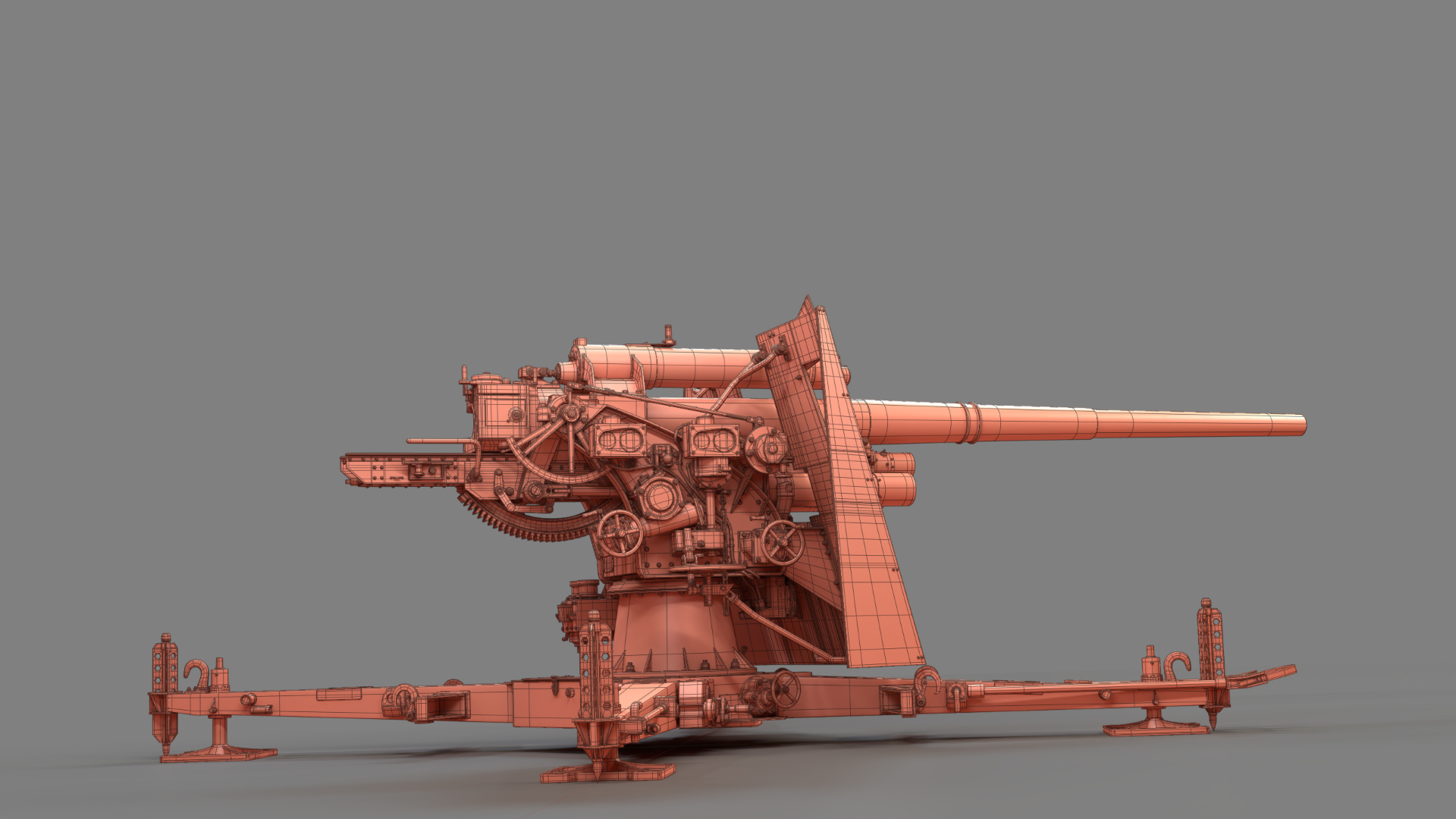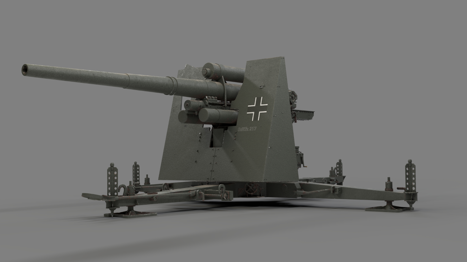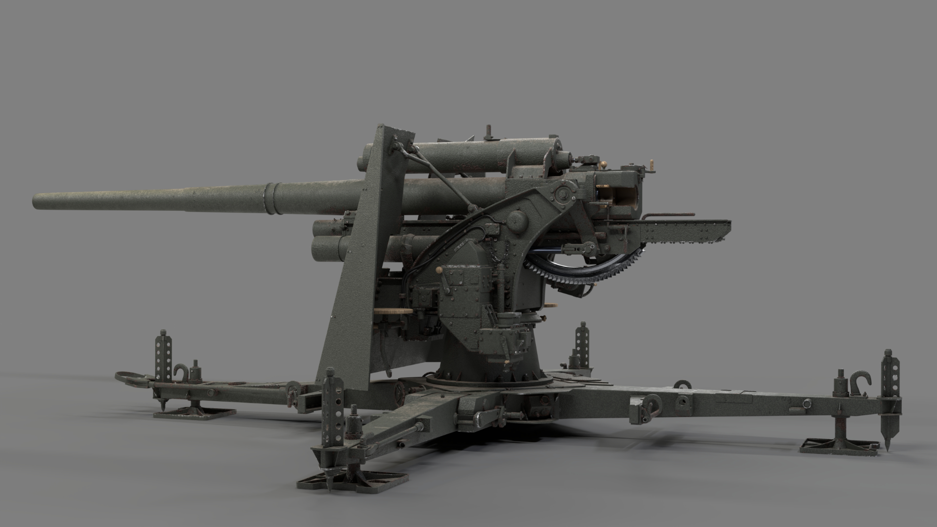 Created in Blender and based on images from the internet, the German 88mm Flak Gun took me just over one year to model in my spare time. Rigged and UV mapped in Blender, this model was textured in Substance Painter before final rendering with Blender’s Cycles render engine.