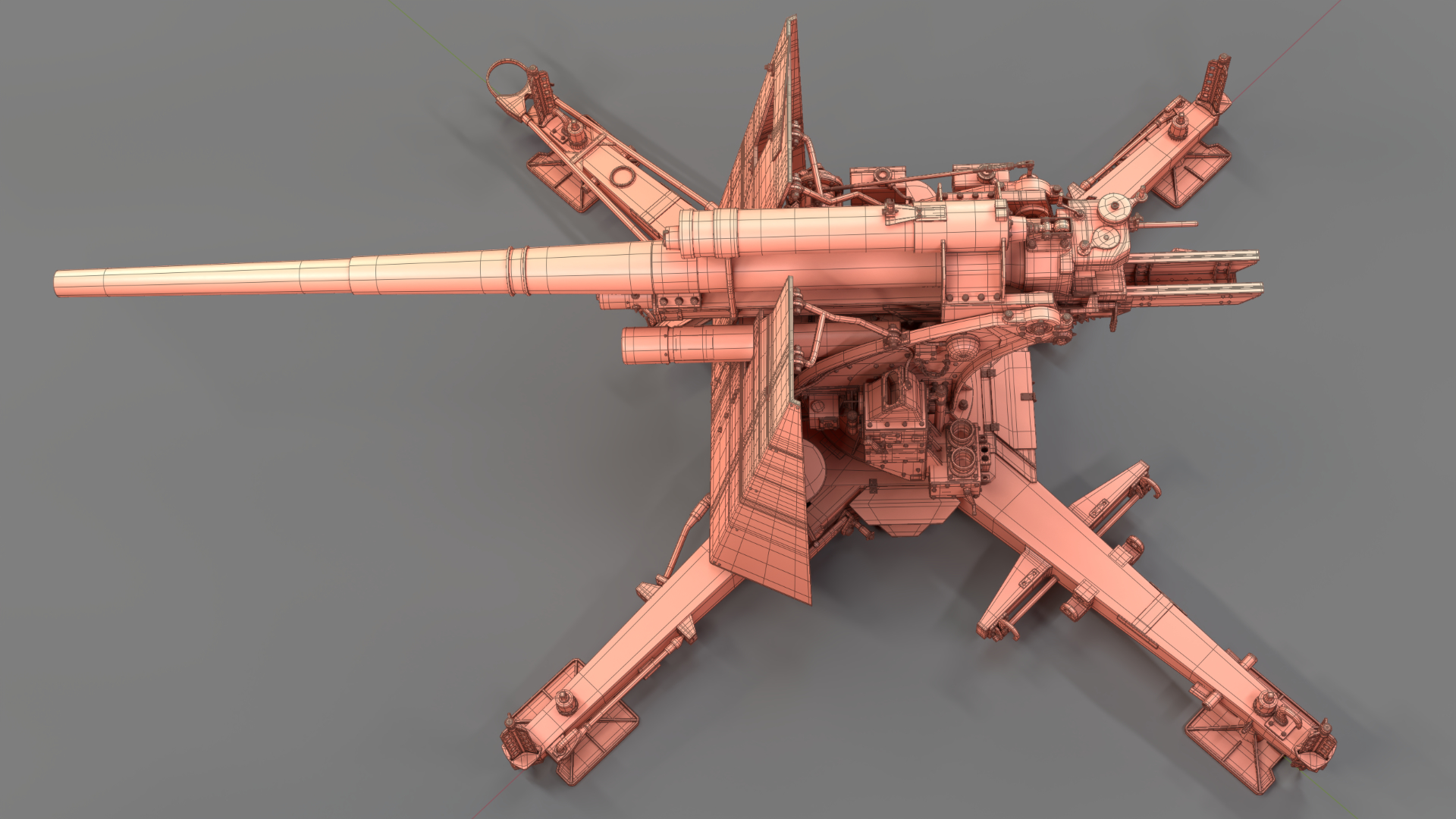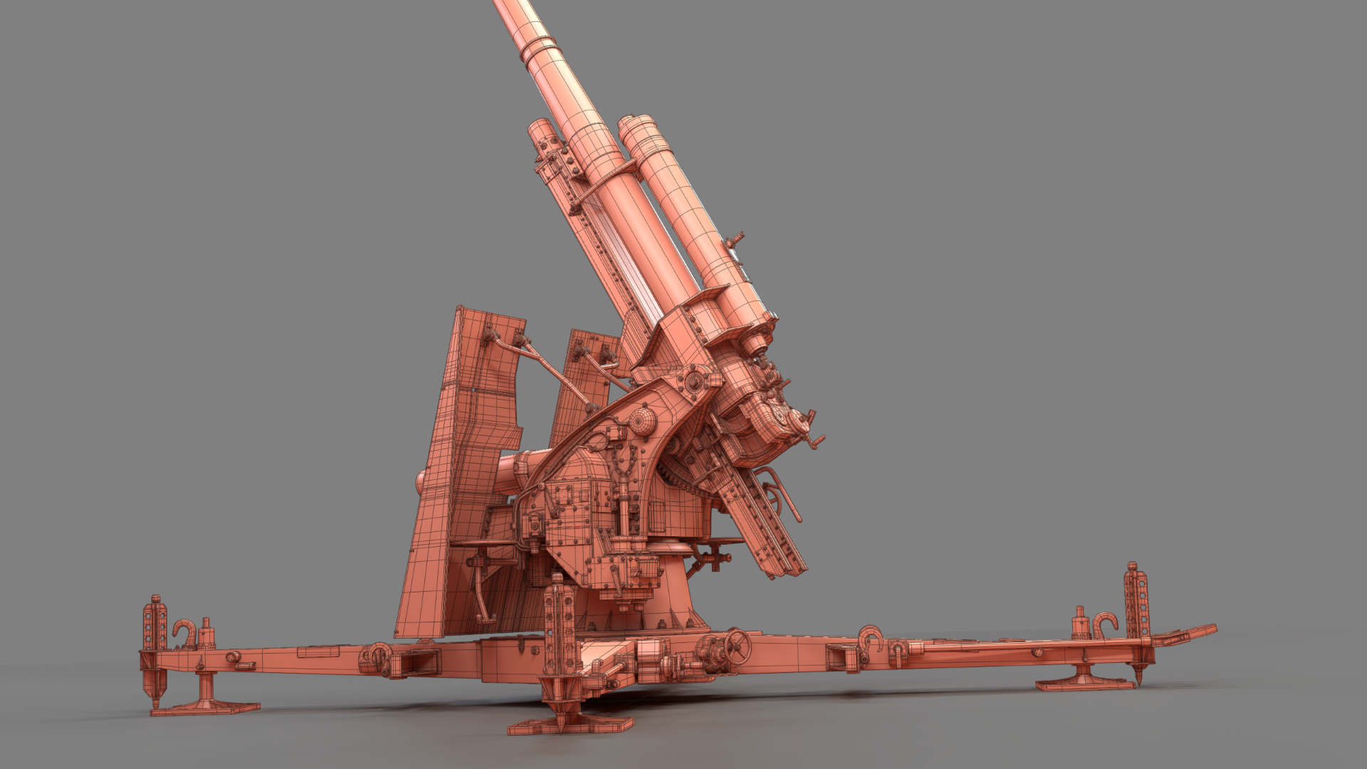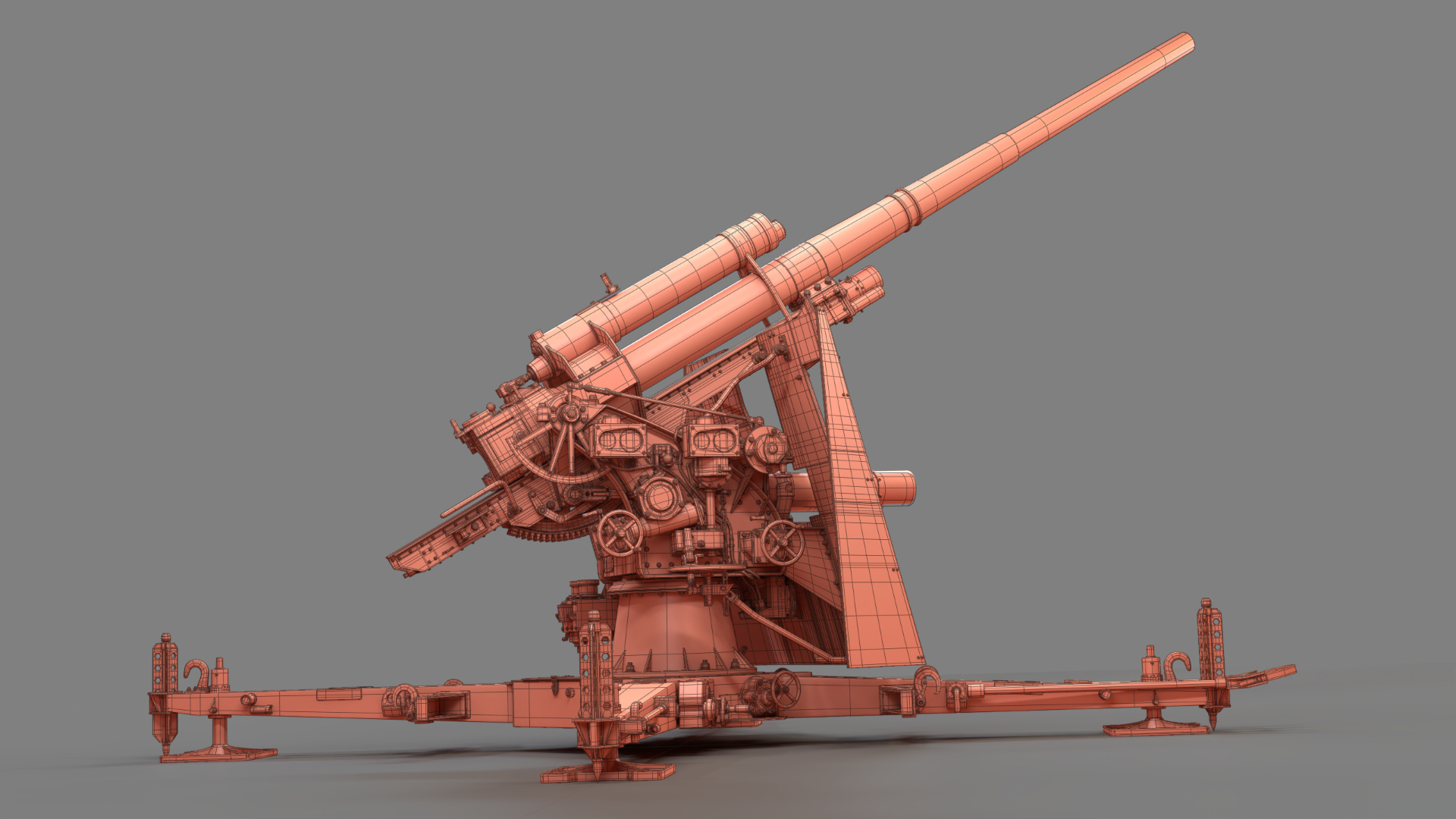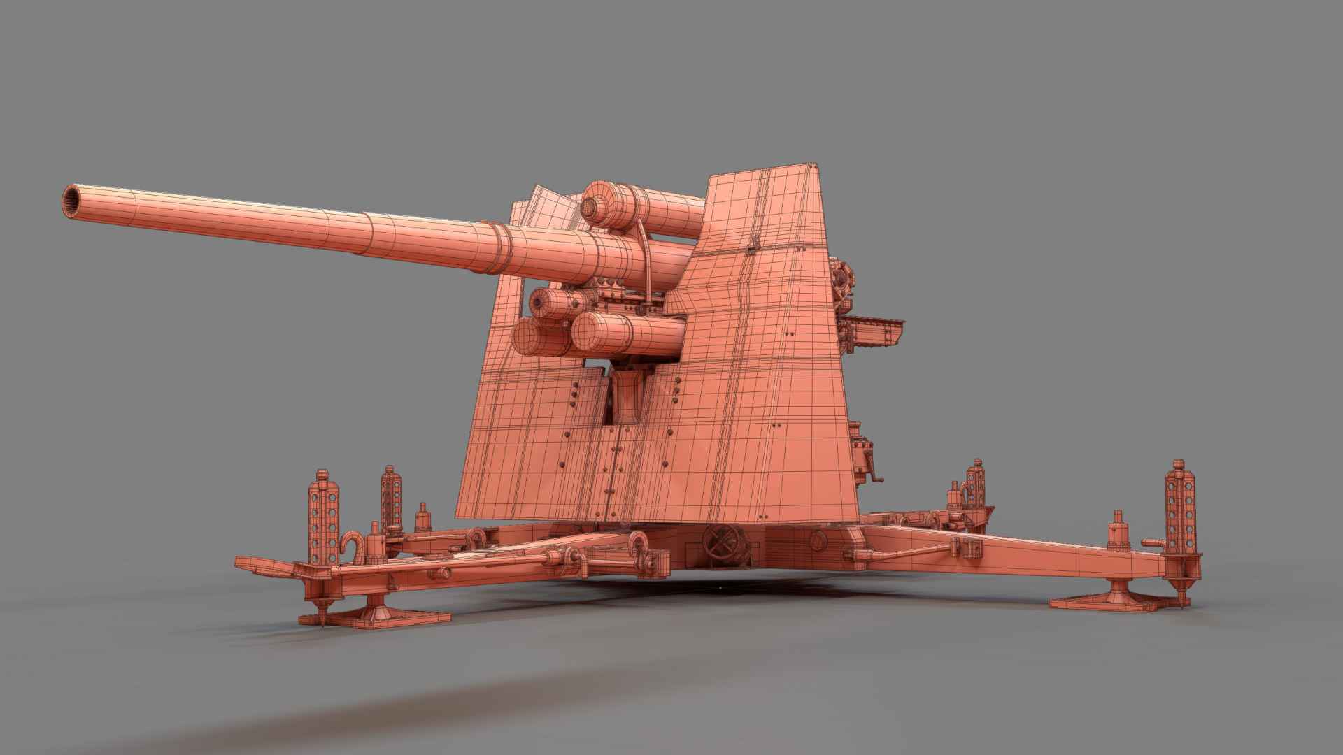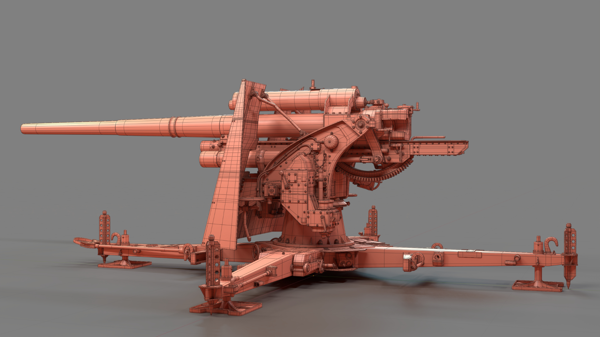 Created in Blender and based on images from the internet, the German 88mm Flak Gun took me just over one year to model in my spare time. Rigged and UV mapped in Blender, this model was textured in Substance Painter before final rendering with Blender’s Cycles render engine.