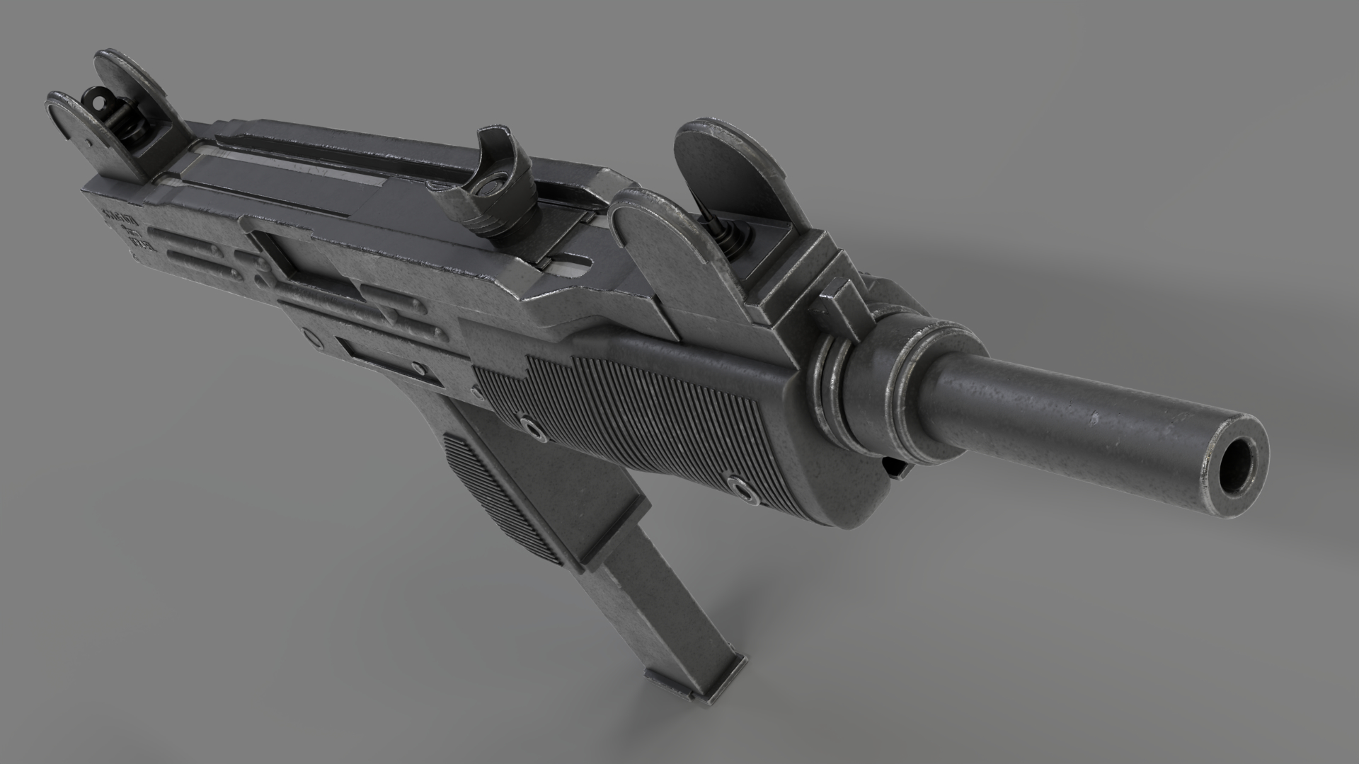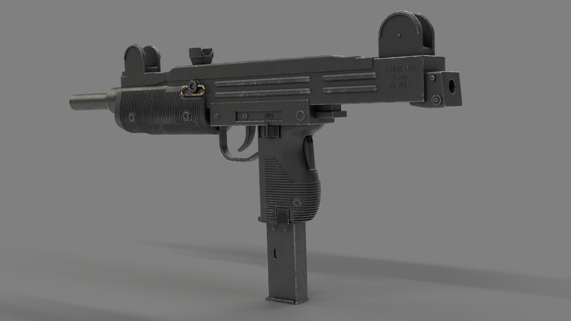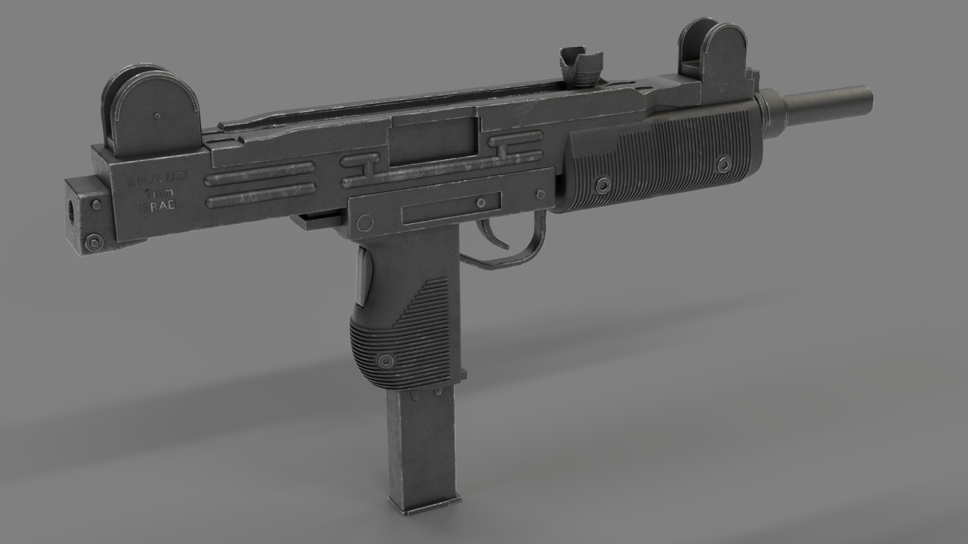 For approx 20 years I have had a kitset 1:1 scale model of the Uzi Submachine Gun. It is a working kitset that fires 6mm Airsoft Plastic BB’s. To this day I still have it and take pleasure in pinging annoying sparrows and the odd cat. Unfortunately it doesnt hurt them, but it does send them on their way. Quite a few years ago I decided to create a 3d model of it in Blender.